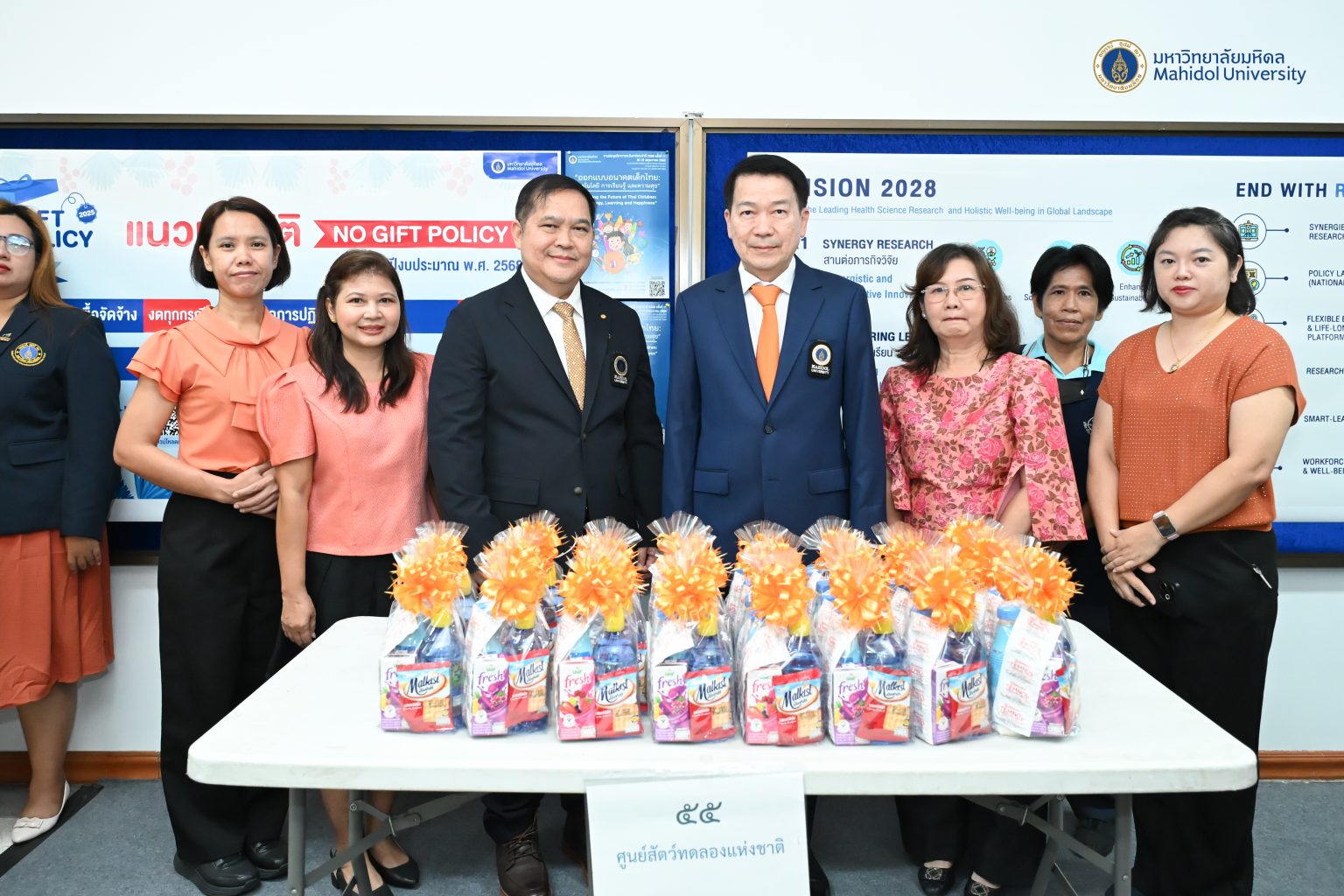 ศาสตราจารย์ นายแพทย์ปิยะมิตร ศรีธรา อธิการบดีมหาวิทยาลัยมหิดล พร้อมด้วยผู้บริหาร และผู้แทนจากส่วนงานต่าง ๆ เข้าร่วมทำบุญตักบาตรถวายเป็นพระราชกุศล เนื่องในโอกาสวันคล้ายวันประสูติ สมเด็จพระเจ้าน้องนางเธอ เจ้าฟ้าจุฬาภรณวลัยลักษณ์อัครราชกุมารี กรมพระศรีสวางควัฒน วรขัตติยราชนารี ในโอกาสทำบุญครั้งนี้ นายสัตวแพทย์สุรชัย จันทร์ทิพย์ ผู้อำนวยการศูนย์สัตว์ทดลองแห่งชาติ พร้อมด้วยบุคลากรศูนย์ฯ เข้าร่วมกิจกรรมทำบุญตักบาตรฯ มหาวิทยาลัยมหิดล จัดพิธีทำบุญตักบาตรถวายพระ และพิธีถวายพระพร ณ สำนักงานอธิการบดี