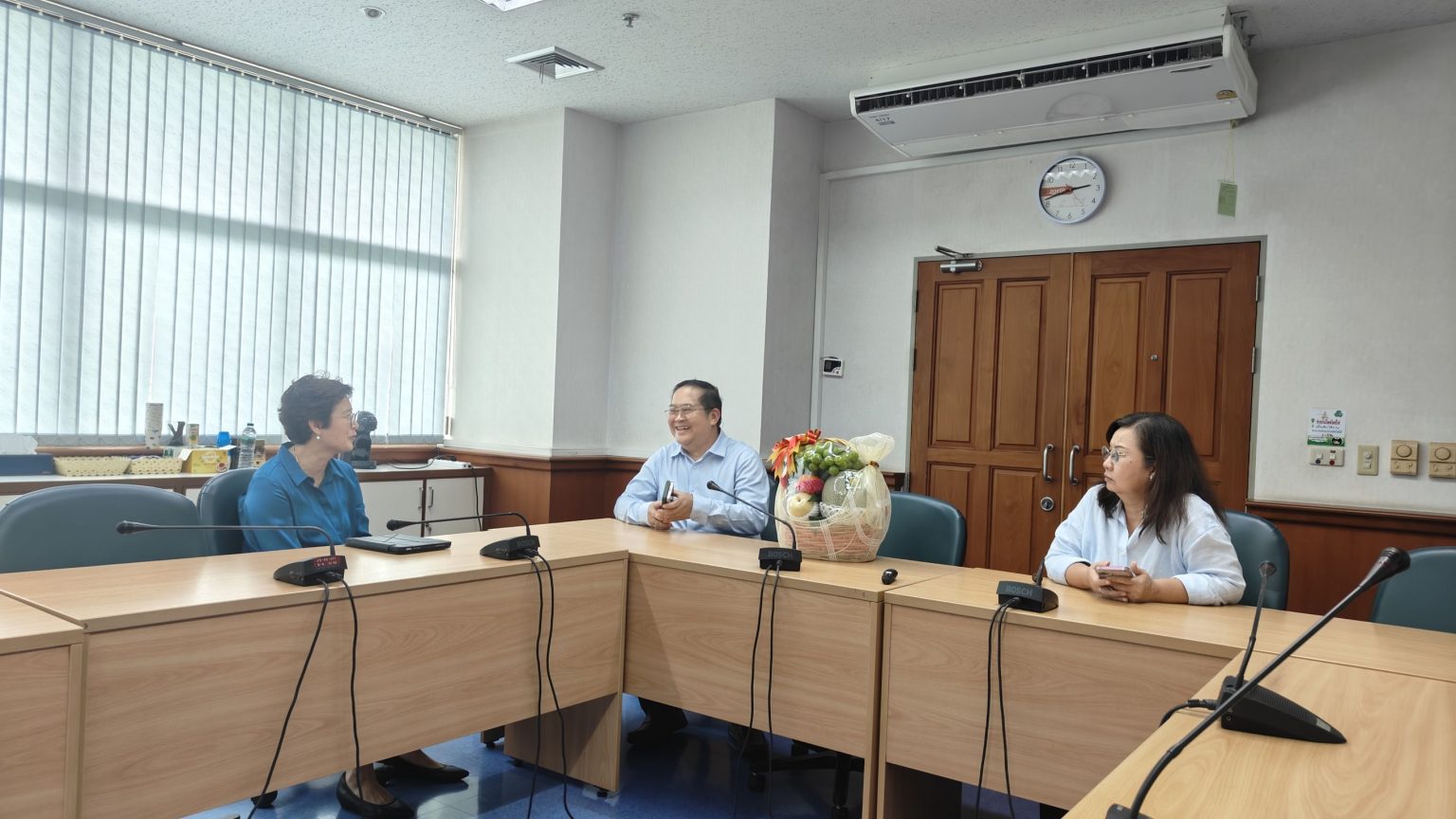 นายสัตวแพทย์สุรชัย จันทร์ทิพย์ ผู้อำนวยการศูนย์สัตว์ทดลองแห่งชาติ นางวิภาณี ชินชำนาญ รองผู้อำนวยการฝ่ายบริหาร และนายสัตวแพทย์จินดิต งามวงศ์รณชัย หัวหน้าหน่วยตรวจวิเคราะห์ทางห้องปฏิบัติการ เข้าหารือกับ รองศาสตราจารย์ ดร.สัตวแพทย์หญิงวลาสินี ศักดิ์คำดวง คณบดีคณะสัตวแพทยศาสตร์ มหาวิทยาลัยมหิดล เพื่อหารือความร่วมมือด้านการวิจัยและการใช้ประโยชน์ร่วมกันด้านเครื่องมือและวิชาการ เพื่อเสริมสร้างศักยภาพของบุคลากรและบริหารทรัพยากรให้เกิดคุณค่าและประโยชน์สูงสุดด้านการวิจัยและการเรียนการสอน